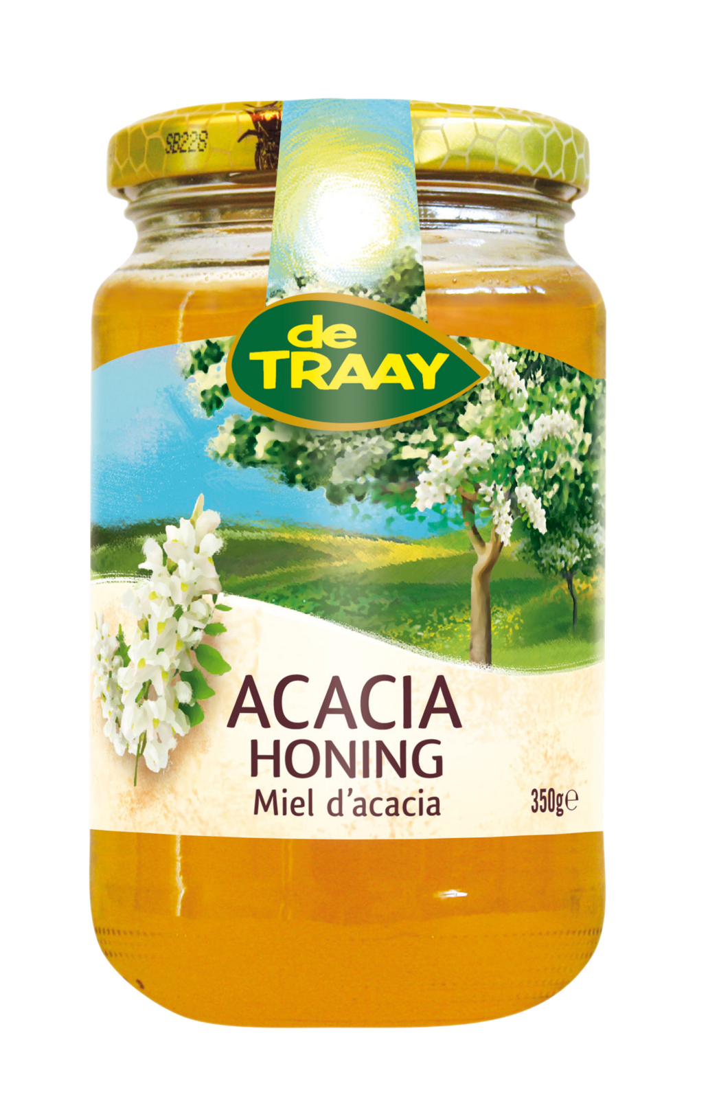 De Traay Honing Acacia, voor deze honing verzamelen bijen in het voorjaar de nectar van de bloesem van Acaciabomen. Door de milde en zoete smaak is hij bijzonder lekker door uw thee/koffie, yoghurt, muesli of in een smoothie. Acaciahoning staat bekend om de prachtige lichte